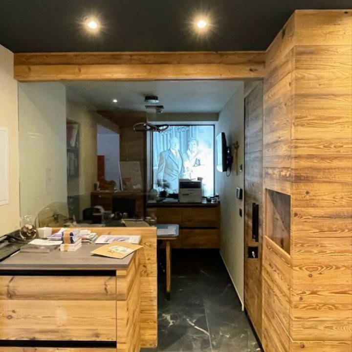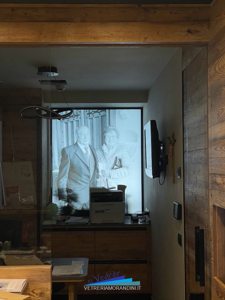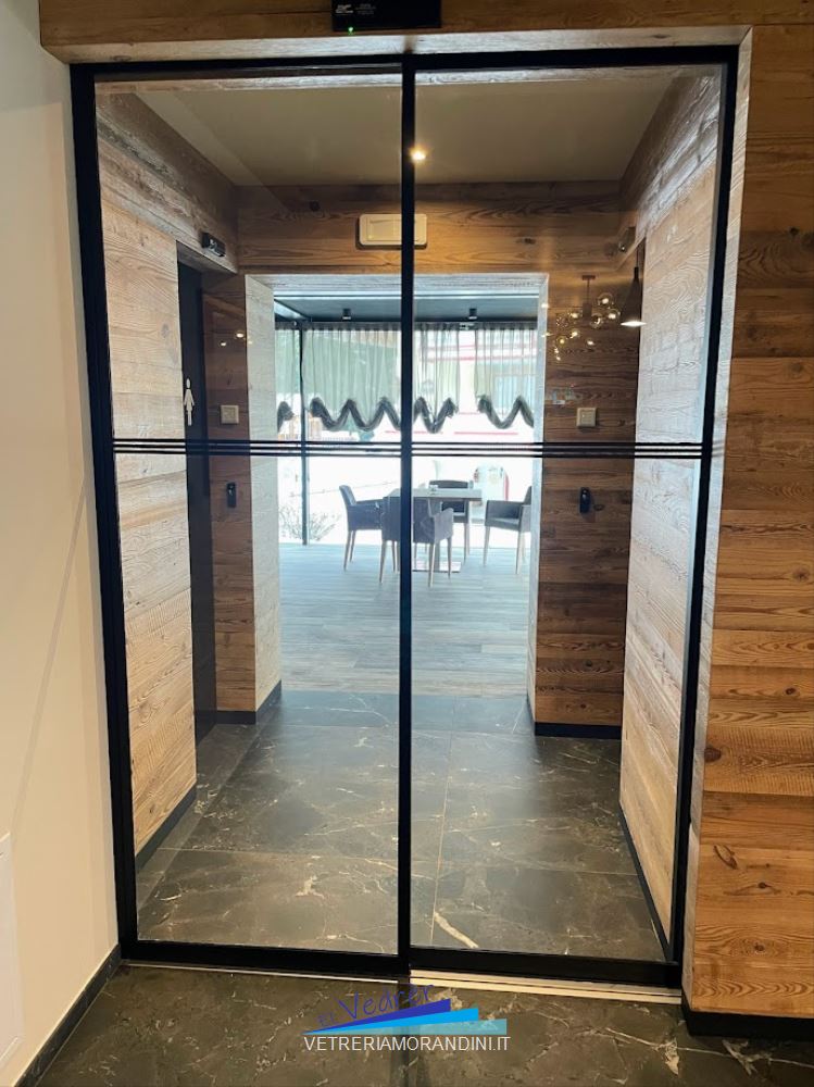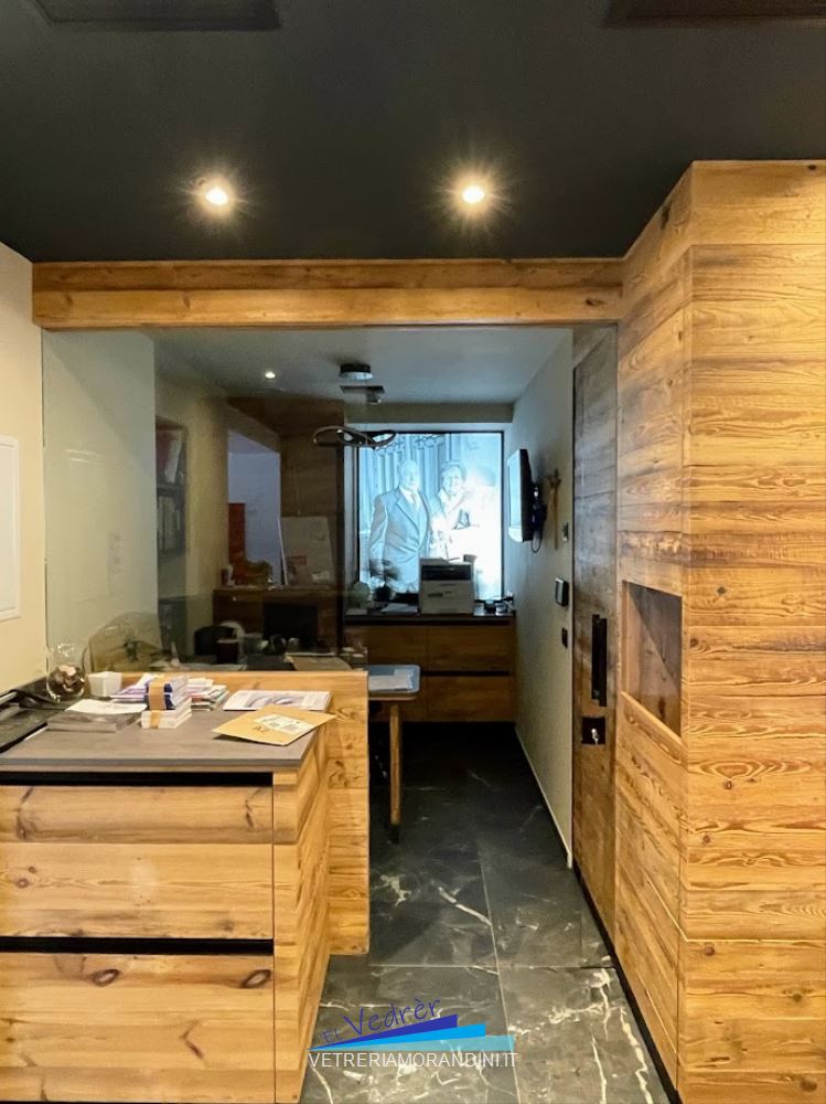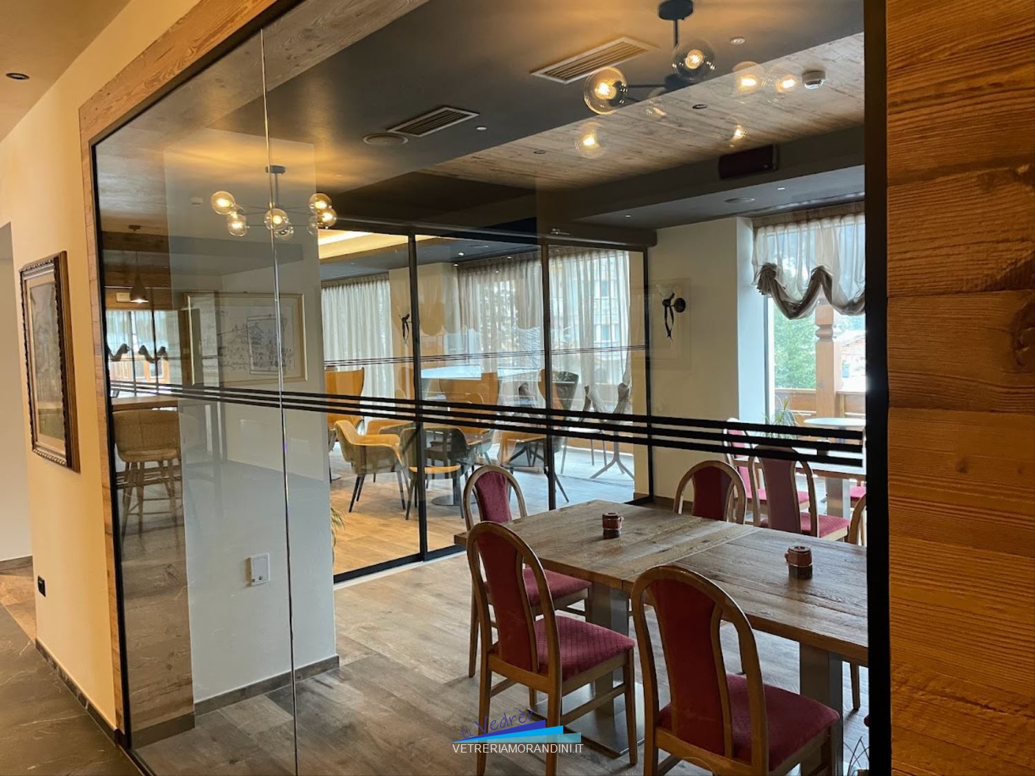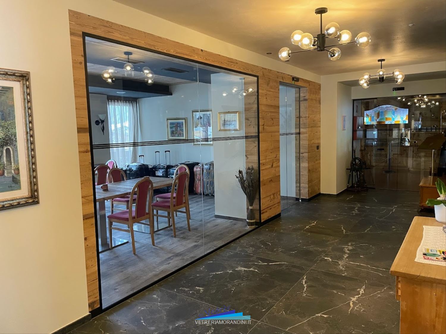 Grandi vetrate divisorie con ante in Cristallo Temperato per dare luce e profondità ai rinnovati spazi dell’Hotel Flora Alpina di Campitello di Fassa. Completano i nuovi arredi gli specchi panoramici e la vetrata con stampa digitale della coppia fondatrice di questo meraviglioso Hotel.