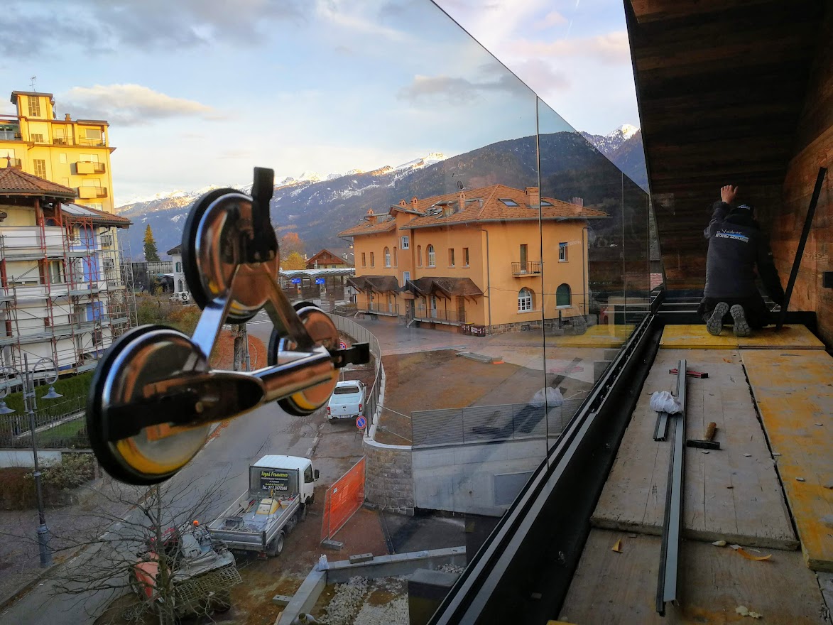 Nei recenti lavori di ristrutturazione del moderno Hotel San Valier a Cavalese (TN) abbiamo realizzato i parapetti in vetro nel balcone all’ultimo piano delle suite e al piano terra nell’ingresso.
