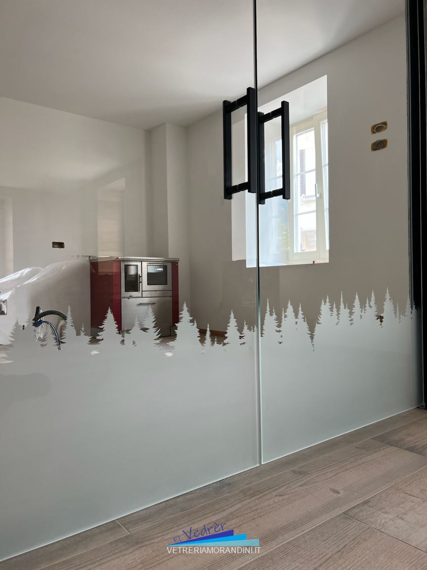 L’elemento vetro è indispensabile nella ristrutturazione di un appartamento per creare ambienti luminosi e recuperare spazio prezioso. La soluzione vedo-non vedo con decorazioni sabbiate può diventare un’interessante occasione di arredo con un tocco originale di eleganza.
