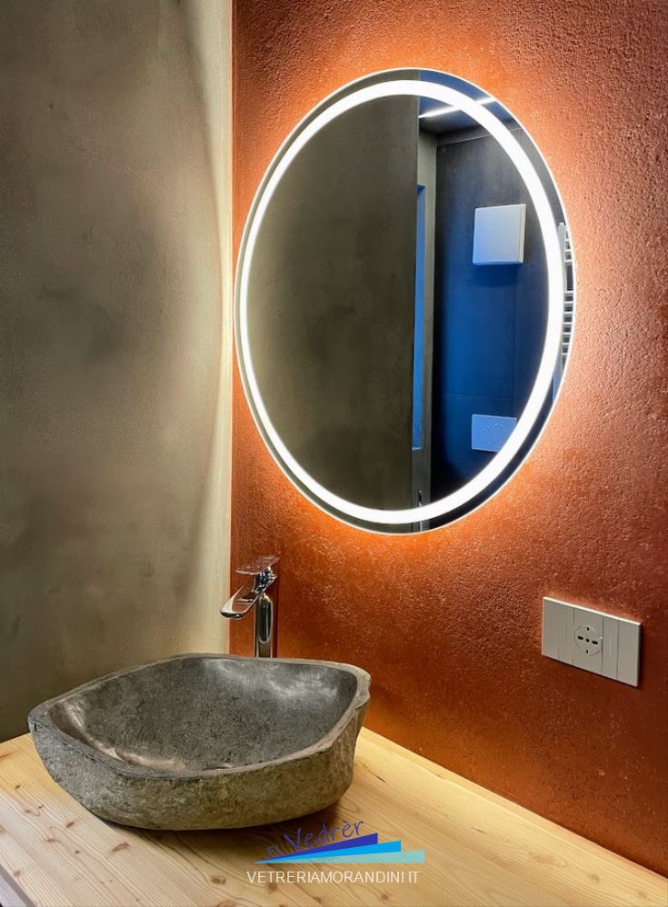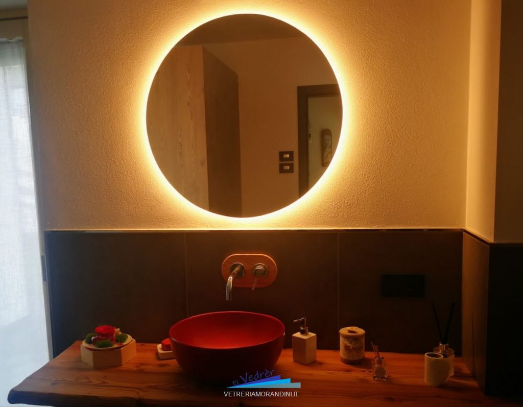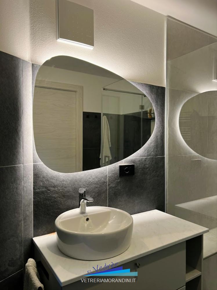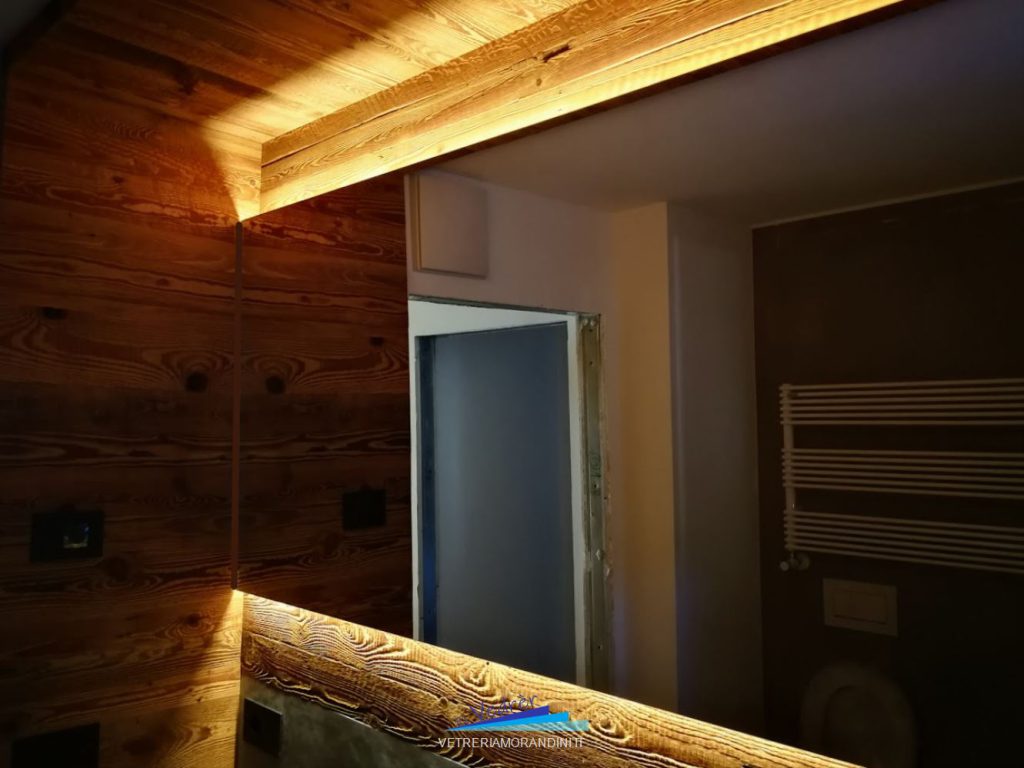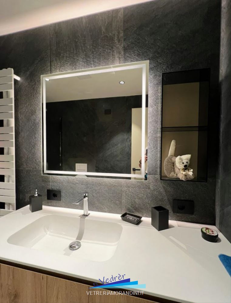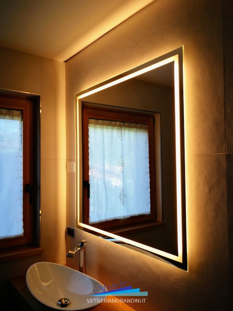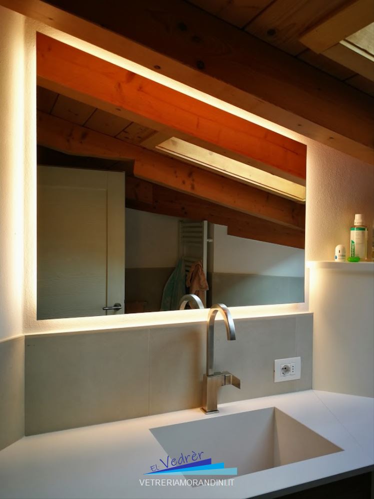 Di recente abbiamo allargato la gamma di specchi con la possibilità di realizzare personalizzazioni e decori retroilluminati con illuminazione a led inclusa.
