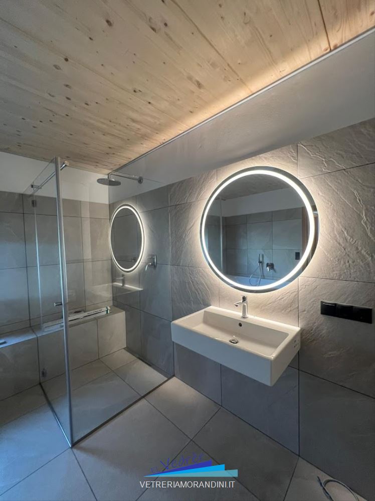 Installiamo anche resistenze elettriche sul retro dello specchio, queste riscaldando lo specchio evitano che si appanni mentre fate la doccia e quando uscirete lo troverete perfettamente pulito.