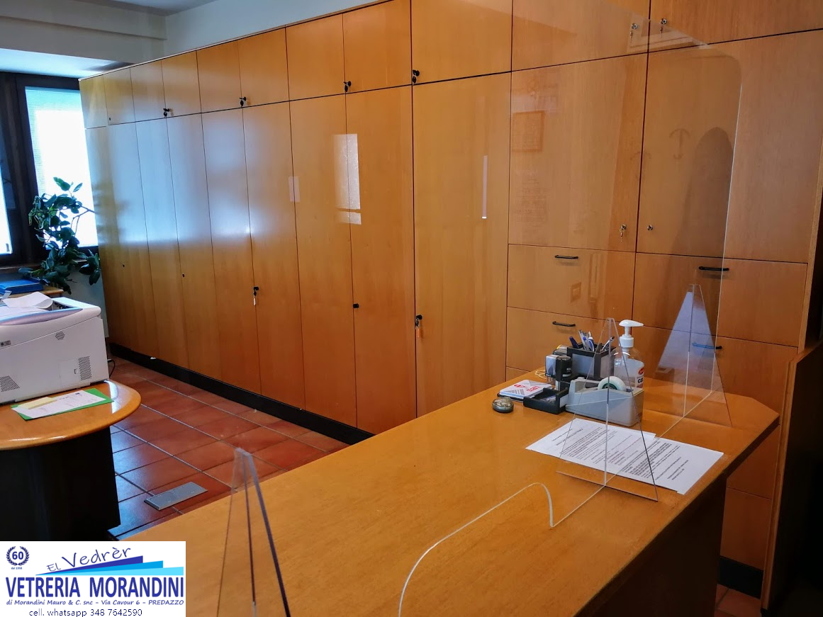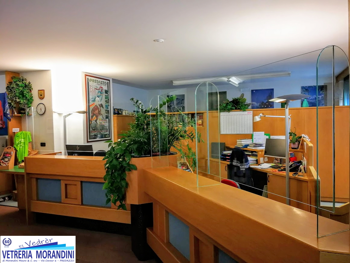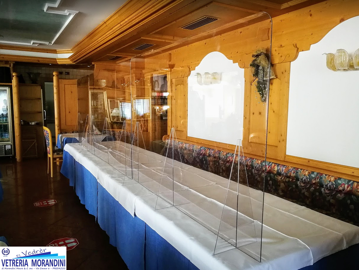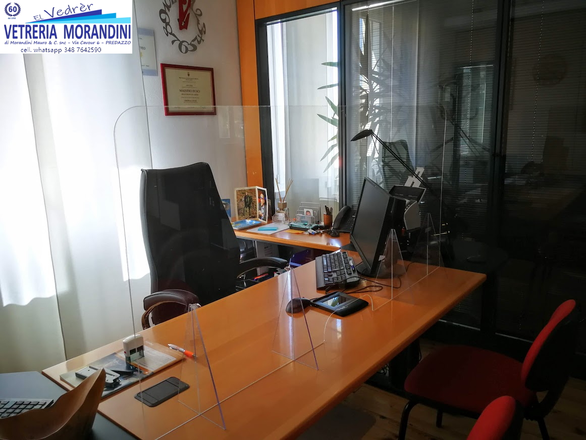 Realizziamo protezioni covid su misura sia in Plexiglass che in Cristallo Temperato o Cristallo Stratificato di sicurezza a lastra sospesa