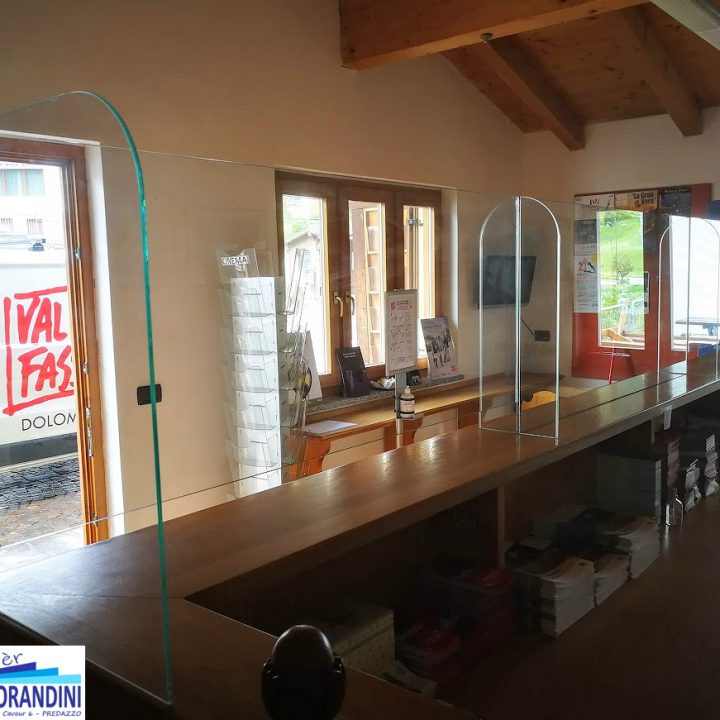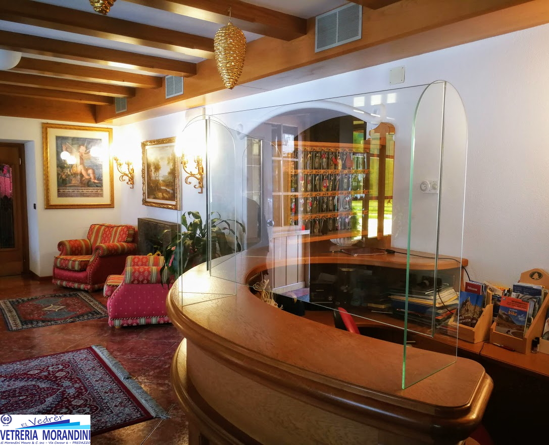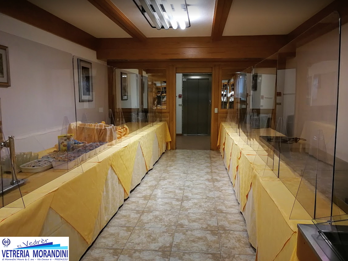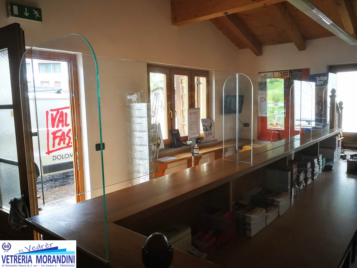 Realizziamo protezioni covid su misura sia in Plexiglass che in Cristallo Temperato o Cristallo Stratificato di sicurezza a lastra sospesa